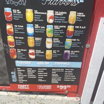 1. Try Something New: While classic daiquiri flavors like strawberry and lime are always a good choice, don't be afraid to step outside your comfort zone and try something new. The Austin Daiquiri Factory offers a wide variety of unique and creative flavors that are sure